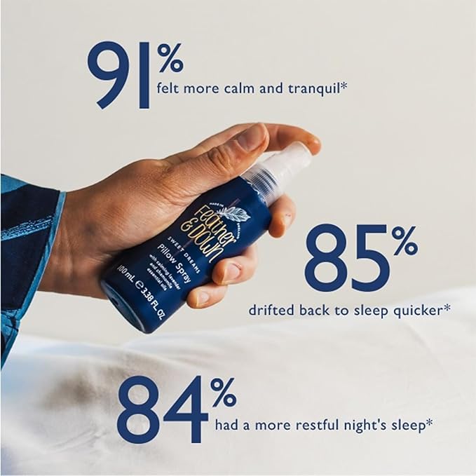 2. Feather & Down Sweet Dream Pillow Spray – Next, this calming spray with lavender and chamomile essential oils is pure magic. A quick spritz on my pillow before bed creates a serene vibe, helping me unwind effortlessly. Smell the difference!