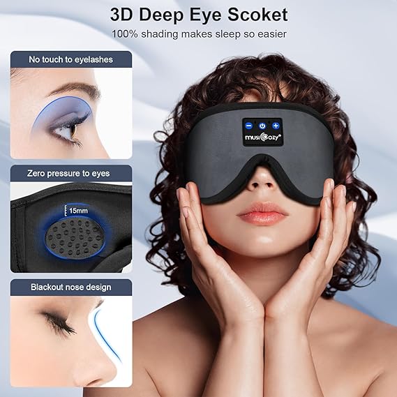 3. MUSICOZY Sleep Mask Headphones – Additionally, this 3D silk mask blocks out 100% of light while playing soothing audio through built-in Bluetooth headphones. It’s a game-changer for blocking distractions during restless nights. See more!